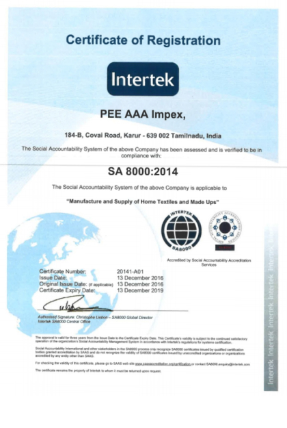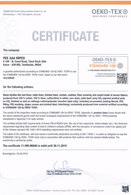 Pee Aaa Impex, Established in 1999 and run by the young generation entrepreneur's now we are one among the leading Exporters of Karur Made Home Textiles.
